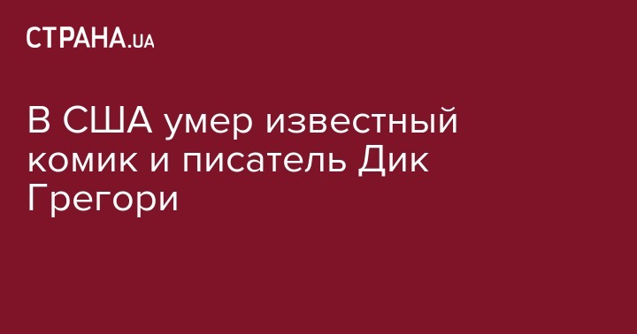 Актер, общественный деятель, писатель, комик Дик Грегори умер в возрасте 84 лет. Об этом сообщает СBS News.