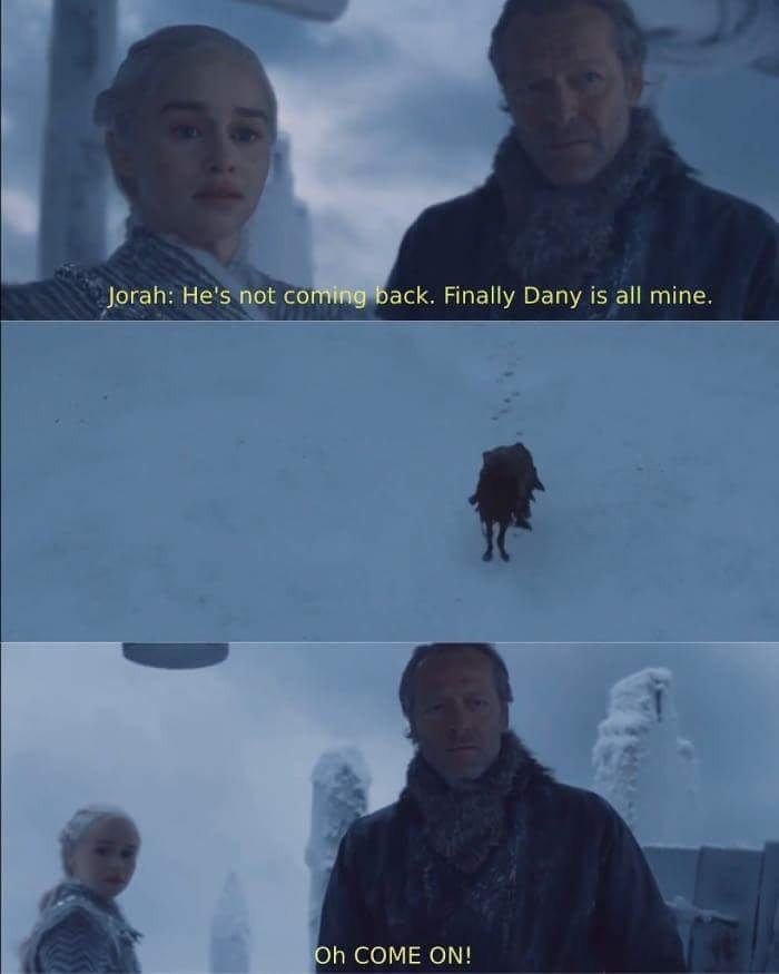 Последний вышедший эпизод сериала "Игра престолов" породила множество мемов. 6 серия 7 сезона была посвящена битве Джона Сноу и его товарищей с Белыми ходоками и армией зомби. Большинство фотожаб обыгрывают Короля ночи и смерть одного из драконов Дейенерис.