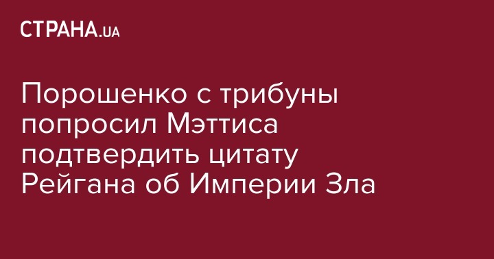 Порошенко с трибуны попросил Мэттиса подтвердить цитату Рейгана об Империи Зла