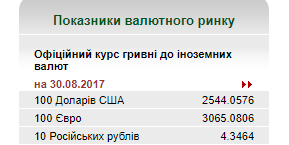 В среду, 30 августа, Национальный банк установил официальный курс гривны по отношению к доллару США на уровне 25,44 грн. Об этом говорится на сайте НБУ.