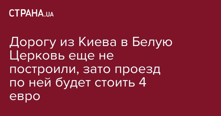 Проезд по новой дороге "Киев - Белая Церковь", которую планируют начать строить в 2019 году, ориентировочно будет стоить €4,5. Об этом сообщает "Сегодня" со ссылкой на сюжет телеканала "Украина".