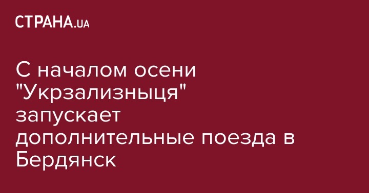 С началом осени "Укрзализныця" запускает дополнительные поезда в Бердянск