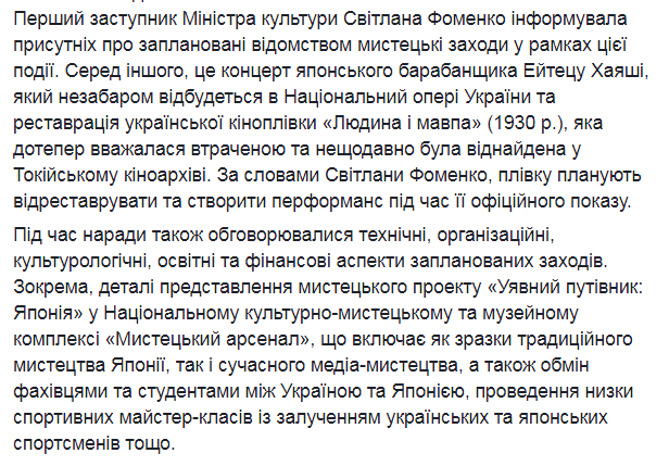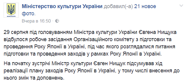 Об этом сообщается на Facebook-странице Министерства культуры Украины.