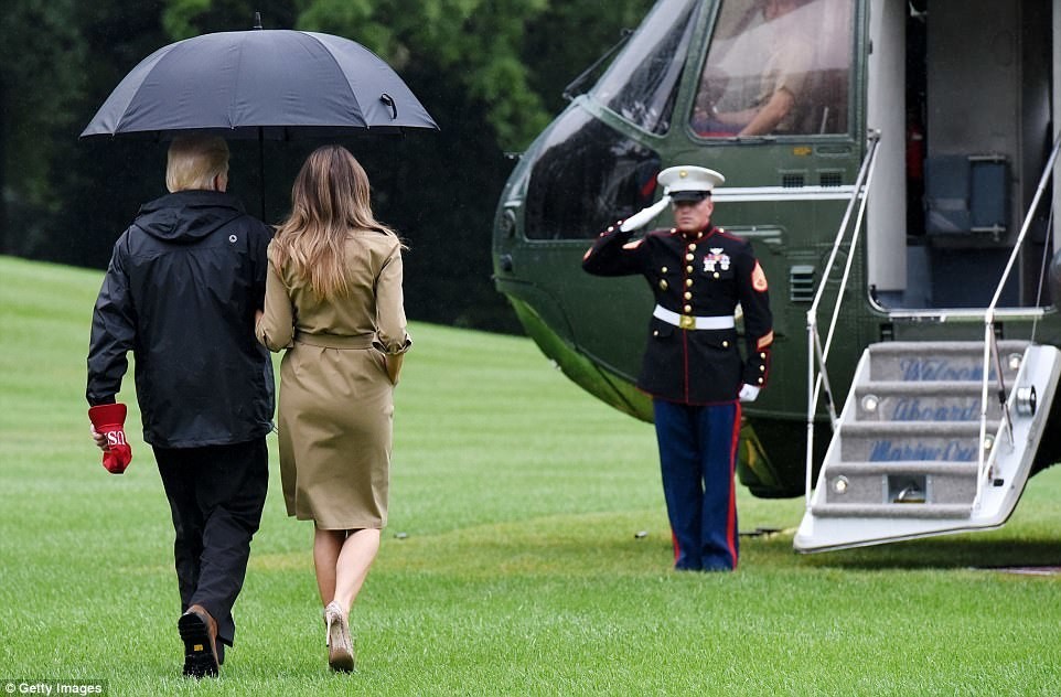 Президент Дональд Трамп был одет сдержаннее. Он выбрал непромокаемые ботинки и теплую куртку.