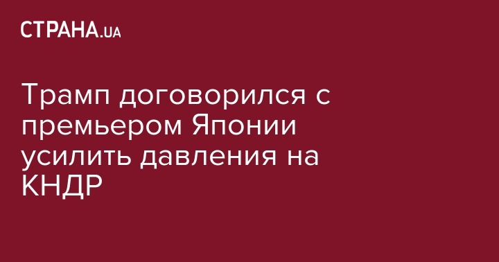 В воскресенье, 3 сентября, президент США Дональд Трамп и премьер-министр Японии Синдзо Абэ достигли договоренности, что международное сообщество должно усилить давление на КНДР в связи с ядерным испытанием. Об этом сообщает Reuters.