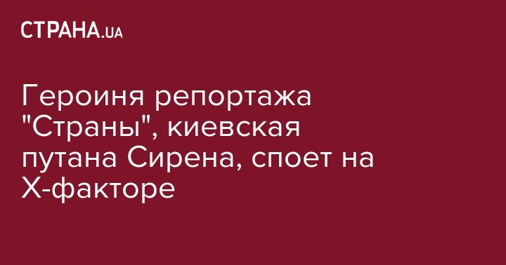 Поющая Сирена, героиня репортажа "Страны" о столичных проститутках, попала в песенное шоу Х-фактор-8. Его покажут 9 сентября на телеканале СТБ, а пока в YouTube появился анонс программы с участием киевской путаны.