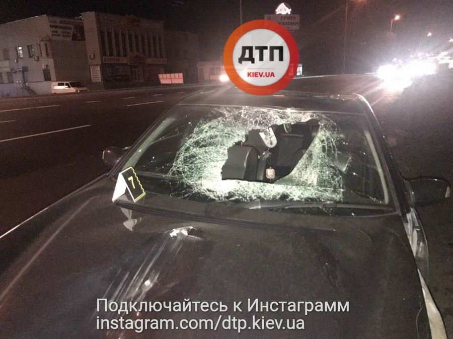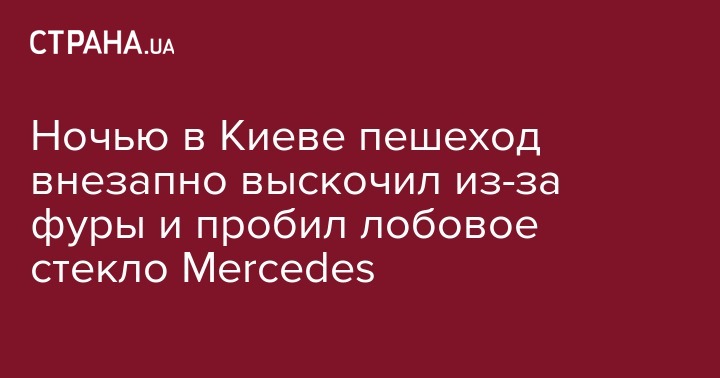 Ночью в Киеве пешеход внезапно выскочил из-за фуры и пробил лобовое стекло Mercedes