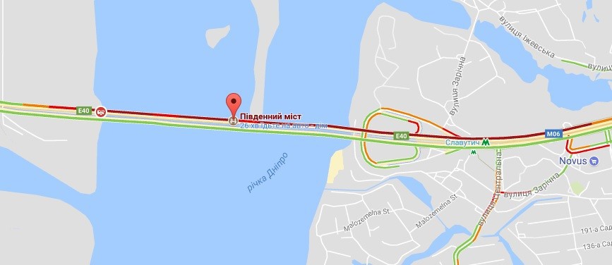 Движение на этом участке движения заблокировано, образовалась пробка в направлении правого берега.