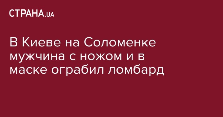 В Соломенском районе Киева сегодня утром, 12 сентября, неизвестный мужчина с ножом ворвался в помещение одного из кредитных учреждений и забрал деньги и золотые украшения. Об этом сообщает пресс-служба столичной полиции.
