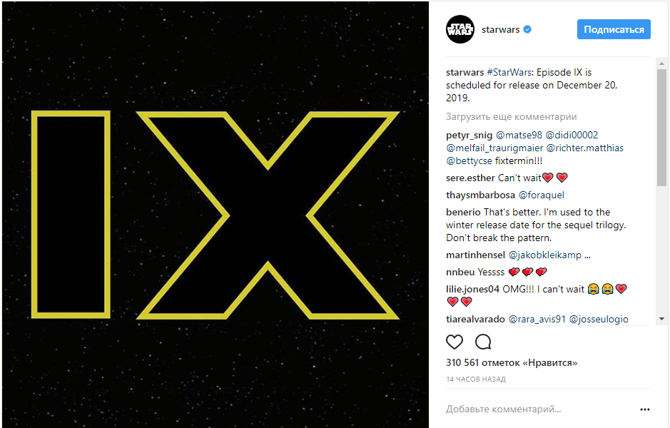 "Релиз девятого эпизода переносится на 20 декабря 2019", - сказано в сообщении. Изначально премьера была запланирована на 24 мая 2019 года.