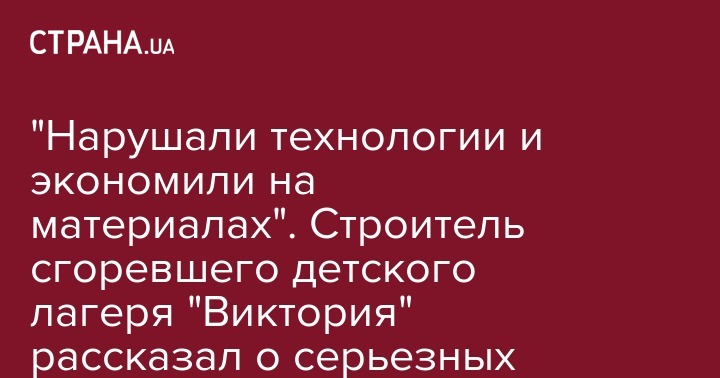 Реконструкция детского лагеря "Виктория" в Одессе, где из-за пожара погибли трое детей, проводилась в спешке, с нарушением технологии и экономией на всех материалах. Об этом на условиях анонимности рассказал один из строителей в комментарии изданию "Думская".