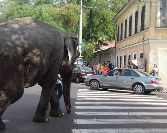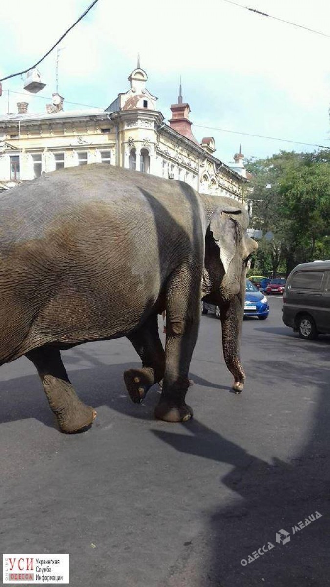 В Одессе по улице Садовой сегодня, 21 сентября, прямо по проезжей части гулял слон. Необычную картину наблюдали множество горожан, пишет УСИ-Одесса.