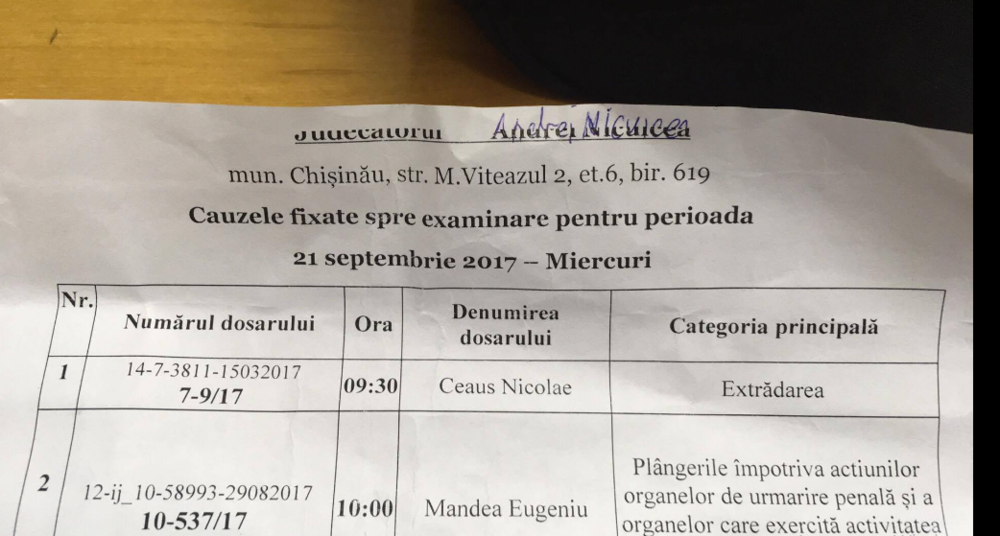 Заседание длилось недолго, не более пяти минут, за закрытыми дверями, несмотря на то, что судья Андрей Никульчи пообещал журналистам, что впустит их в зал суда. По итогу прокурор и Николай Чаус спешно покинули зал суда.