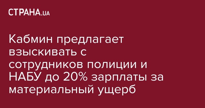 Кабинет Министров предлагает разрешить директору Национального антикоррупционного бюро (НАБУ) и главе Национальной полиции взыскивать часть заработной платы с подчиненных за материальный ущерб, нанесенный ими.