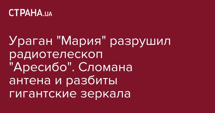 Ураган "Мария" разрушил знаменитый радиотелескоп "Аресибо" в Пуэрто-Рико. Стихия сломала пополам 29-метровую радарную антенну радиотелескопа, а ее обломки пробили главное зеркало телескопа и повредили вспомогательное.