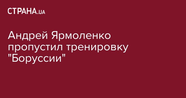 Украинский легионер дортмундской "Боруссии" Андрей Ярмоленко пропустил воскресную тренировку своей новой команды. Об этом передает официальный Twitter "шершней" RuhrNews BVB.