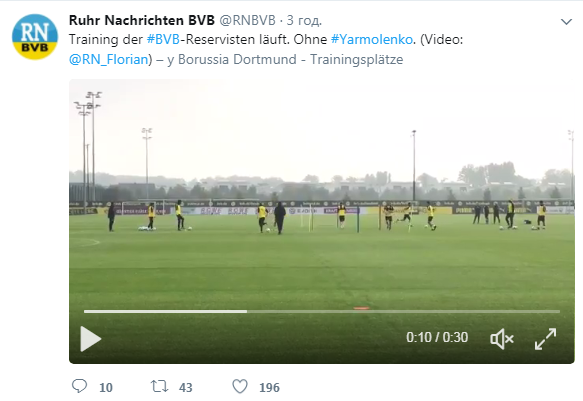 "Завершается тренировка резерва. Без Ярмоленко", - говорится в коротком сообщении.
