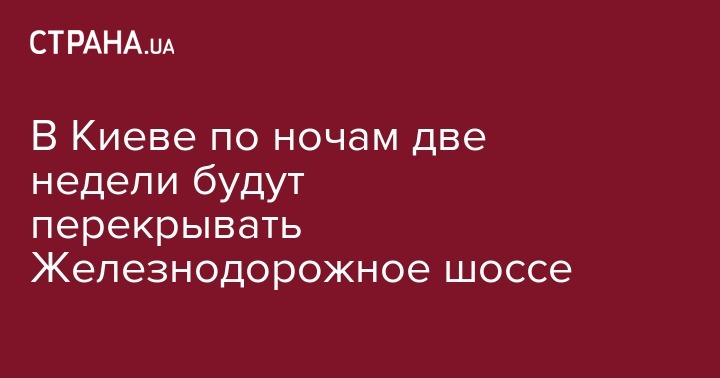 Каждую ночь с 22:00 до 06:00 до 8 октября автомобильное движение по Железнодорожному шоссе в Киеве будет частично ограничено. Об этом сообщает пресс-служба "Киевавтодора".