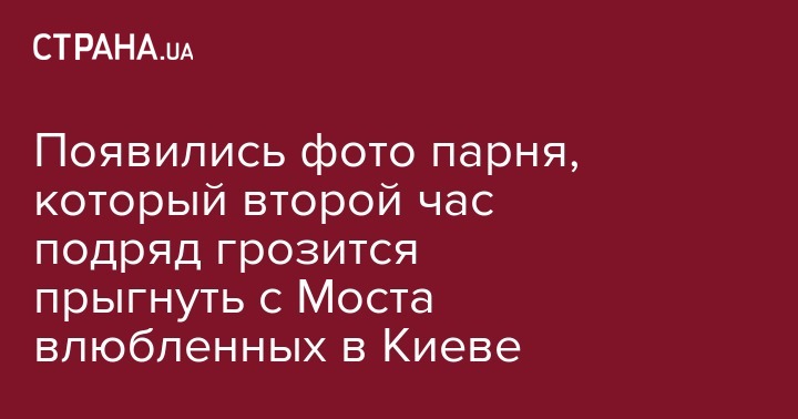Появились фото парня, который второй час подряд грозится прыгнуть с Моста влюбленных в Киеве