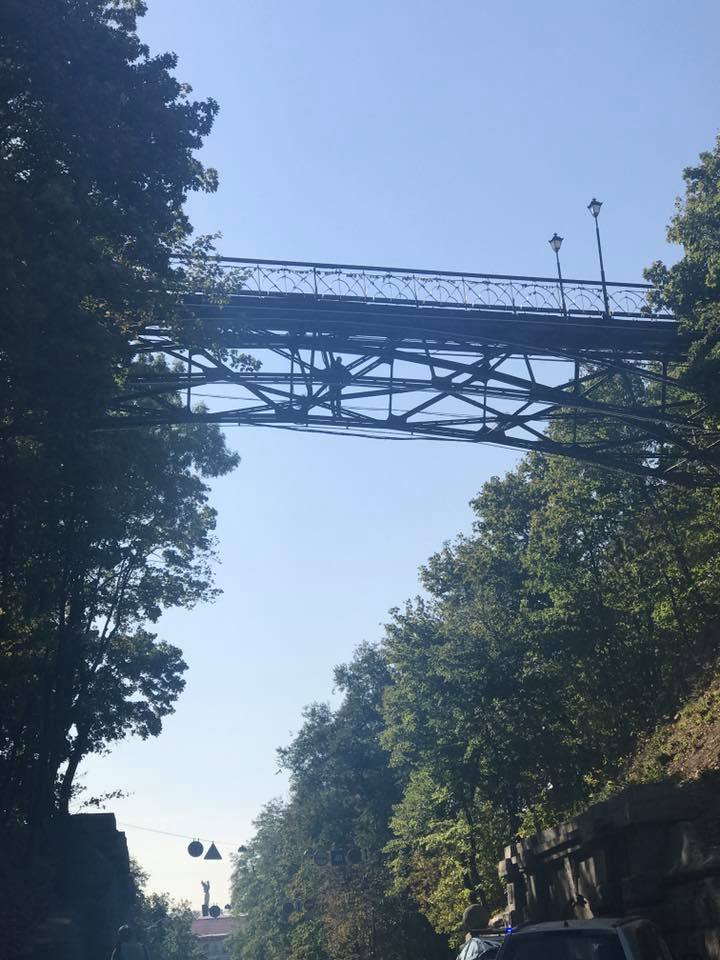 15:25 "Все ждут - прыгнет или нет. Парковая аллея. Сейчас. Движение под ней парализовано", - написал в Facebook пользователь Сергей Старенький.