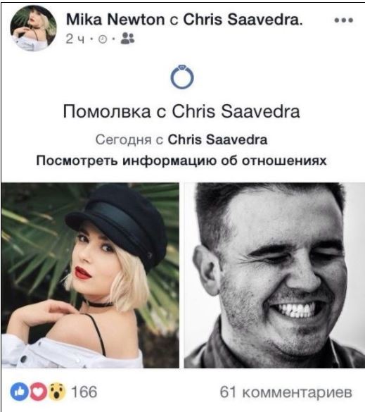 Мика Ньютон опубликовала пост на своей странице в Facebook, где сообщила об этой радостной новости.