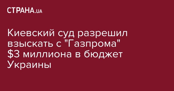 Киевский суд разрешил взыскать с "Газпрома" $3 миллиона в бюджет Украины