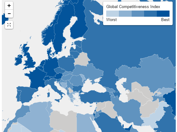 Об этом говорится в рейтинге конкурентоспособности, который составляет Всемирный экономический форум (World Economic Forum, WEF)