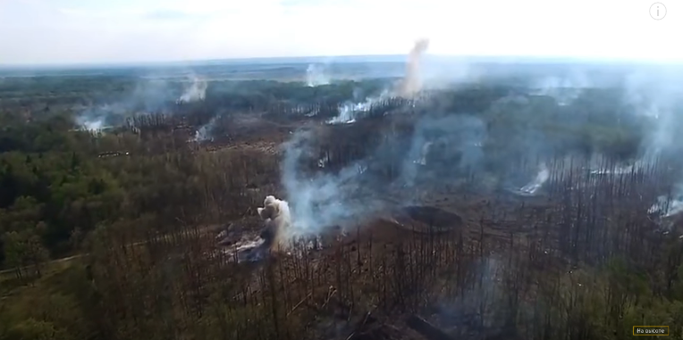ТСН опубликовал кадры трассы между Калиновкой, Павловкой и Сальником. Как можно увидеть лес дымит, но огня не видно. На фото видны воронки от взрывов и сгоревшие в огне деревья.
