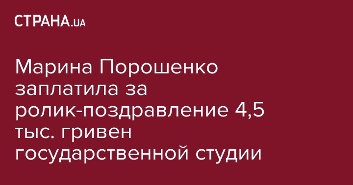 Первая леди Украины Марина Порошенко заплатила 4,5 тыс. гривен за создание нашумевшего поздравительного ролика ко Дню рождения президента. Об этом говорится в ответе пресс-секретаря Марины Порошенко Инны Битюк на запрос программы "Схемы", передает "Радио Свобода".