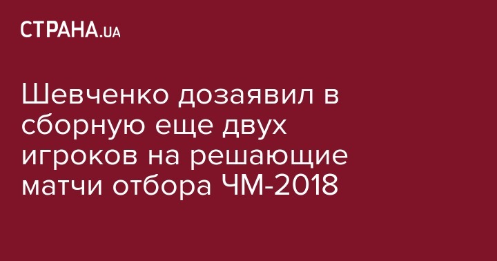 Главный тренер сборной Украины Андрей Шевченко довызвал в состав команды на предстоящие матчи отбора к ЧМ-2018 еще двух игроков - нападающего киевского "Динамо" Артема Беседина и защитника полтавской "Ворсклы" Игоря Пердуту. Об этом сообщает пресс-служба ФФУ.