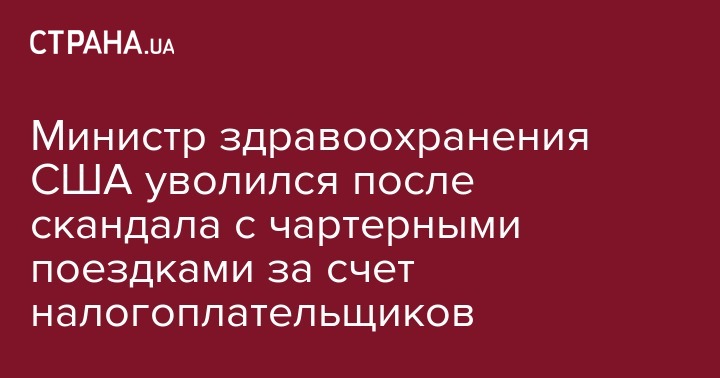 Министр здравоохранения США Том Прайс уволился на фоне скандала с чартерными поездками за счет налогоплательщиков. Об этом сообщает ВВС Украина.