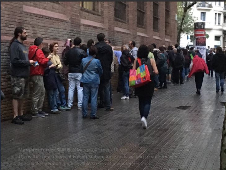 Line of people at a polling station in Eixample, Barcelona went around the entire building. #CatalanReferendum pic.twitter.com/APIp0CZRut
