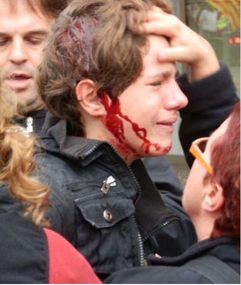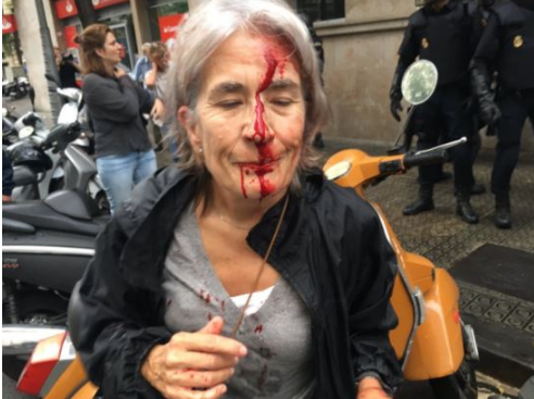 А в соцсетях появились фото пострадавших протестующих от полицейских во время проведения референдума о независимости Каталонии.