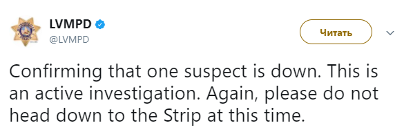 Правоохранители Лас-Вегаса застрелили мужчину, который устроил стрельбу во время кантри-фестиваля на Лас-Вегас-Стрип. Об этом сообщает пресс-служба полиции в Twitter.