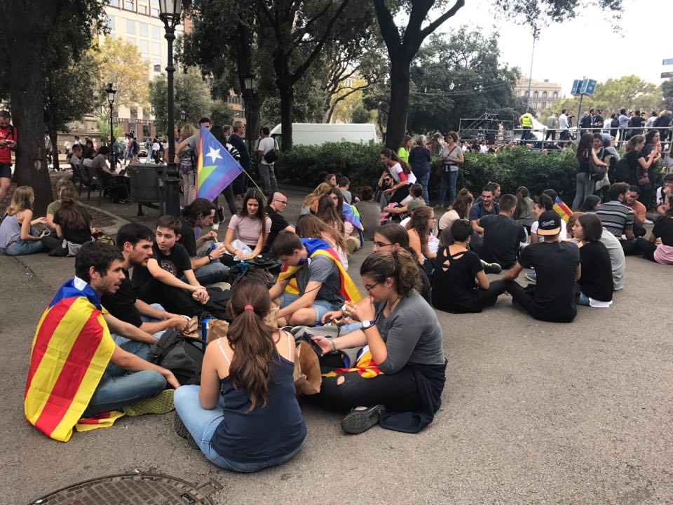На площади Каталония в Барселоне проходит многотысячная акция протеста каталонских студентов против жесткого разгона сторонников референдума, который вчера устроила Национальная полиция и Гражданская гвардия.