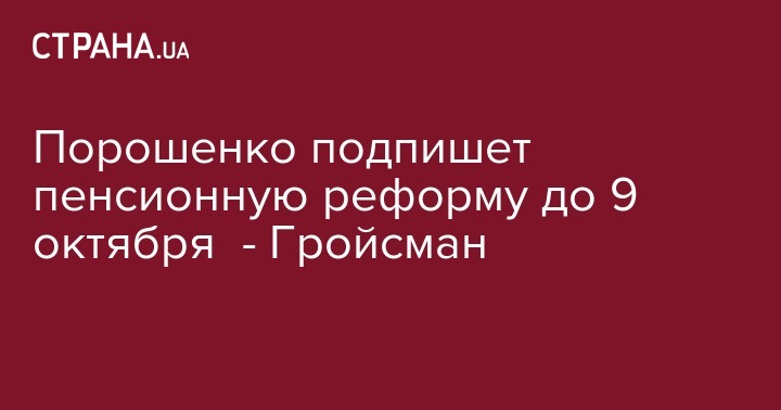 Президент Петр Порошенко до понедельника, 9 октября, принятую Радой "пенсионную реформу". Об этом заявил премьер-министр Владимир Гройсман на селекторном совещании по вопросам внедрения пенсионной реформы, передает "112 Украина".