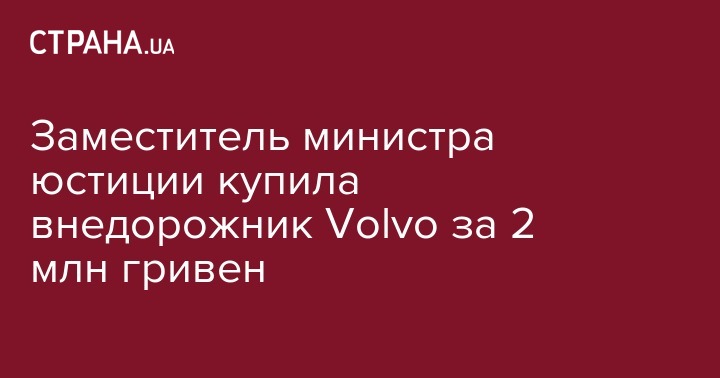 Заместитель министра юстиции по вопросам государственной регистрации Елена Сукманова купила автомобиль Volvo XC90 за 2 млн гривен. Покупку она задекларировала на сайте НАПК.