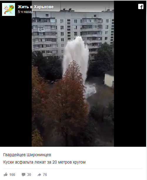 Напомним, что похожая ситуация в Харькове была в июле. Тогда фонтан из водопровода заливал окна дома до 7-го этажа.