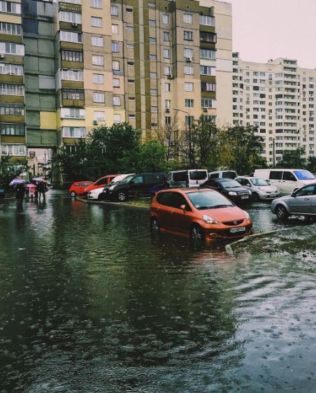 Пользователи соцсетей жалуются на погоду в Киеве, несколько авто уже утонули.