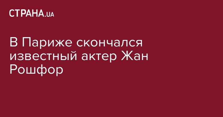В ночь на 8 октября в Париже умер известный французский актер Жан Рауль Робер Рошфор. Об этом в понедельник, 9 октября, сообщает издание Le Point.