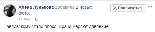 "Павловскому стало плохо. Врачи меряют давление", - пишет она.