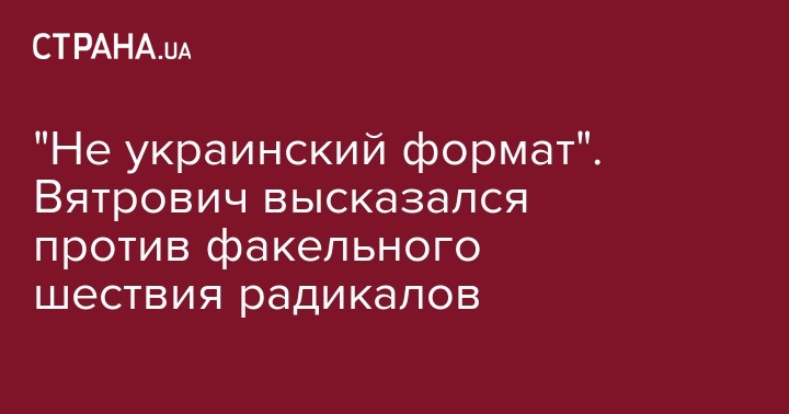 "Я не знаю украинских традиций ходить с факелами. И не являюсь поклонником такого шествия и его не поддерживаю. Есть другие, более украинские, форматы чествования героев", - сказал Владимир Вятрович.