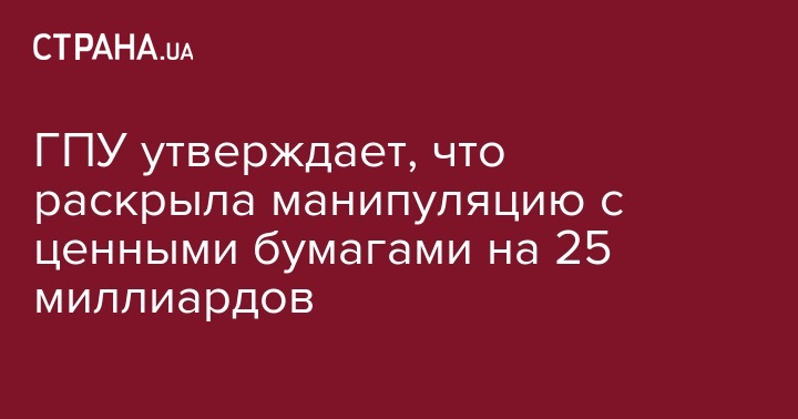 ГПУ утверждает, что раскрыла манипуляцию с ценными бумагами на 25 миллиардов