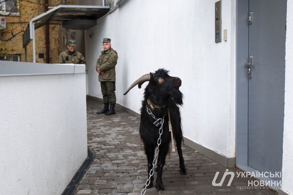 Националисты привели к посольству Чехии в Киеве козла, которого назвали Милош Земан