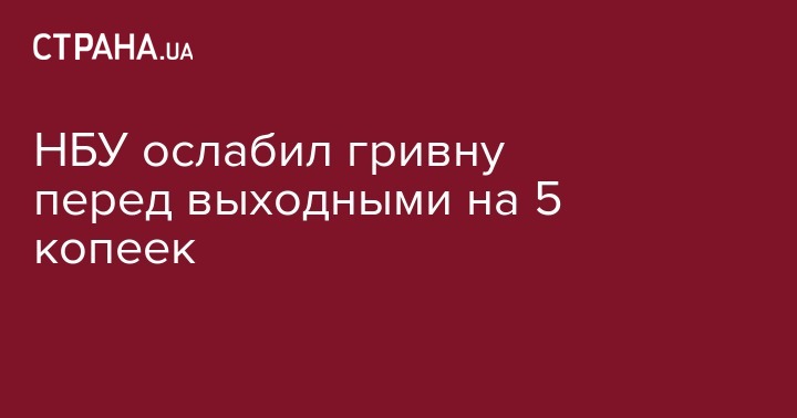 НБУ ослабил гривну перед выходными на 5 копеек