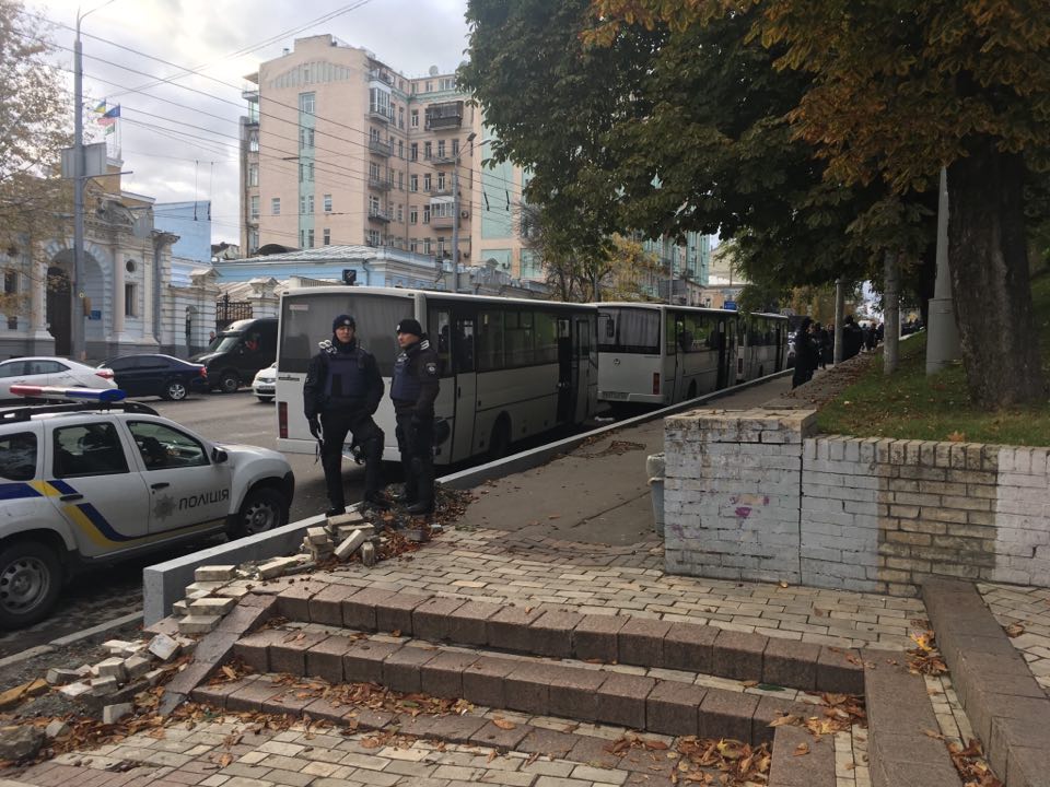 На месте сбора - активисты ВО "Свобода", "Национального корпуса", "Правого сектора" и других националистических организаций.