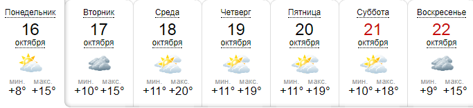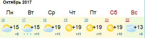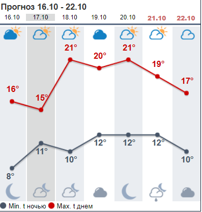 Сайт Gismeteо обещает +19 днем и ясные дни без осадков.
