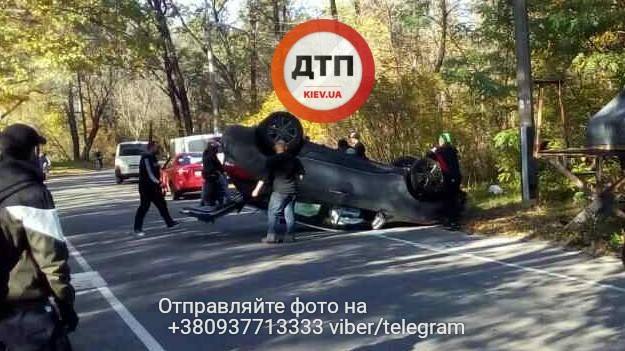 Сегодня в Киеве на Трухановом острове из-за превышения скорости автомобиль опрокинулся верх тормашками. Об этом сообщает dtp.kiev.ua.