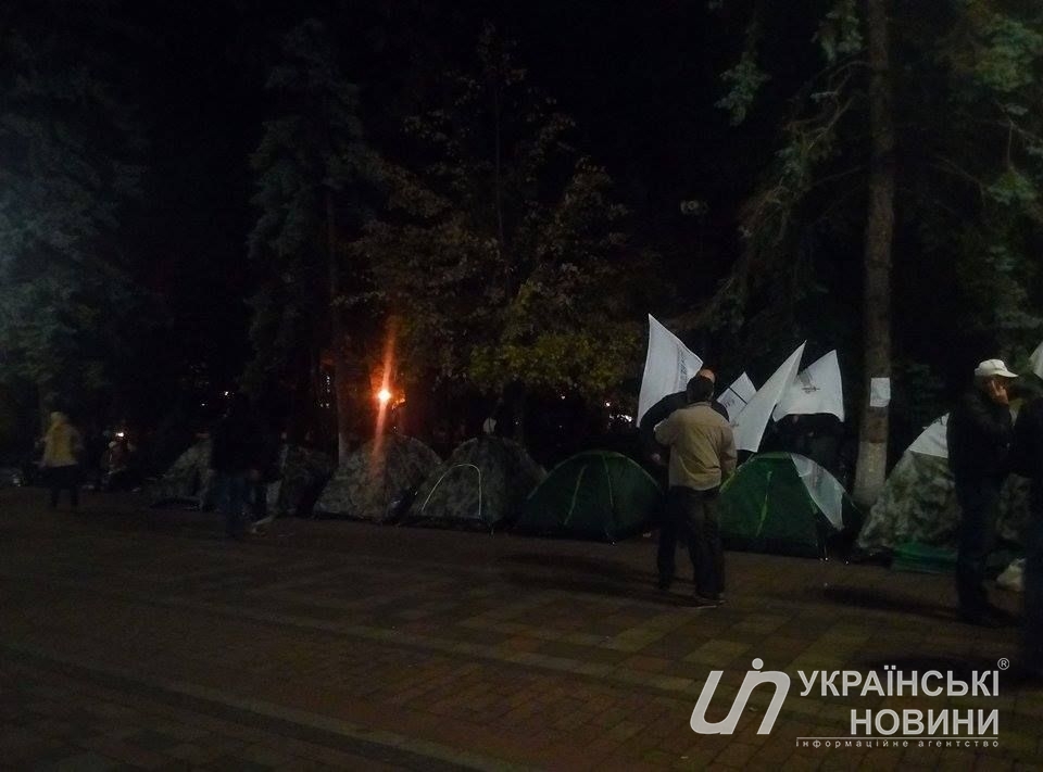 Митингующие установили более 60 палаток возле здания Верховной Рады. Об этом сообщает корреспондент "Страны" с места событий.