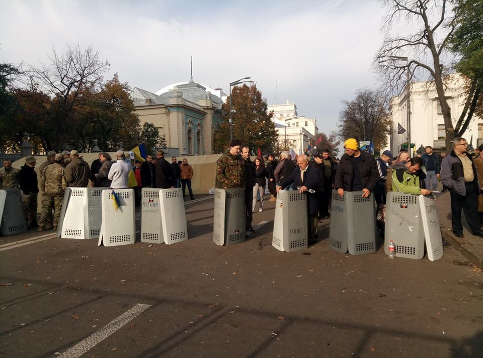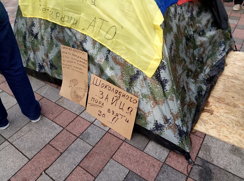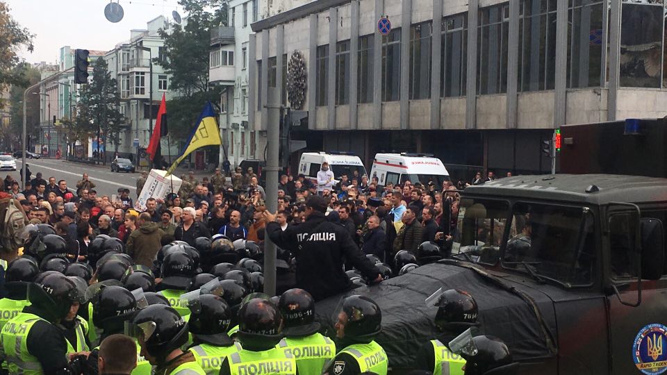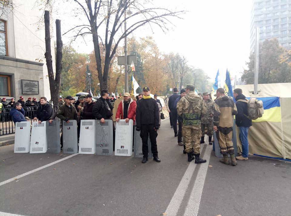 Один из них представился офицером батальона "Донбасс" с позывным Катана, родом с Прикарпатья. Он заявил, что ветераны АТО берут всю ответственность на себя. Требования протестующих - предателей Украины на нары, забрать власть у олигархов и равный закон для всех.